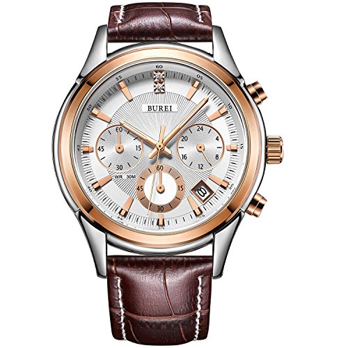 If you are looking for a product BUREI Casual Chronograph Mens Watches with Leather Strap and Date Calendar (Brown) then I will show you information and reviews about this product. BUREI Casual Chronograph Mens Watches with Leather Strap and Date Calendar (Brown) searched by people on the internet then not to run out of this stock. Make purchases with the click of a button 'Buy Now' if you really want to have this product. The following information and reviews about this product: