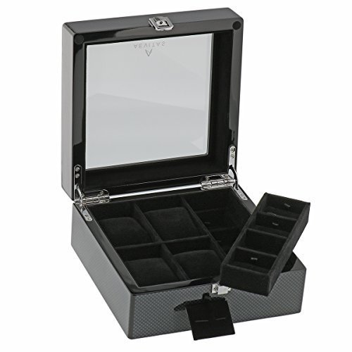 If you are looking for a product Carbon Fibre Watch and Cufflink Collectors Box for 4 Wrist Watches plus 8 Pairs Cufflink by Aevitas then I will show you information and reviews about this product. Carbon Fibre Watch and Cufflink Collectors Box for 4 Wrist Watches plus 8 Pairs Cufflink by Aevitas searched by people on the internet then not to run out of this stock. Make purchases with the click of a button 'Buy Now' if you really want to have this product. The following information and reviews about this product: